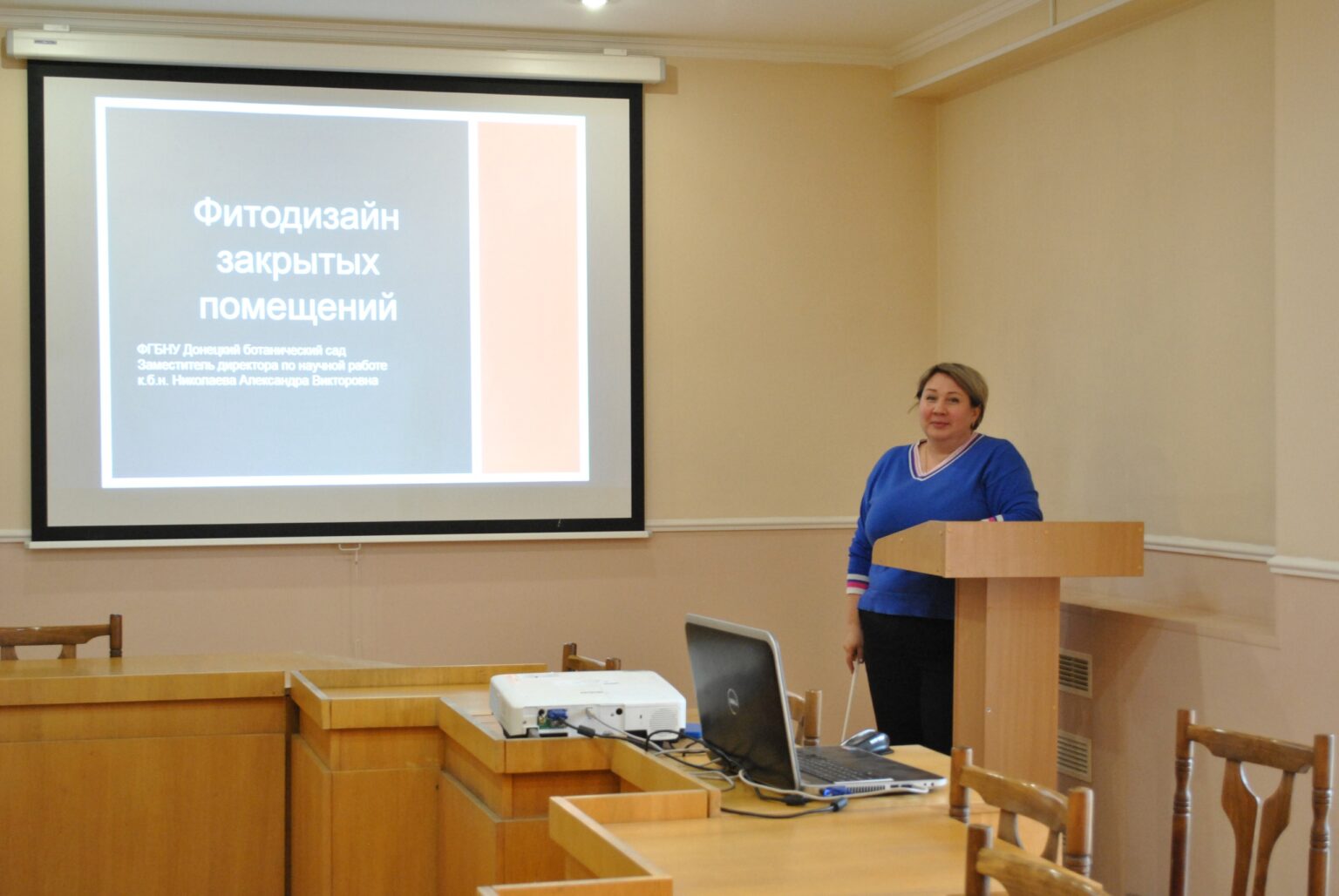 С лекцией «Фитодизайн помещений» выступила Николаева Александра Викторовна, кандидат биологических наук, заместитель директора по научной работе ФГБНУ ДБС.