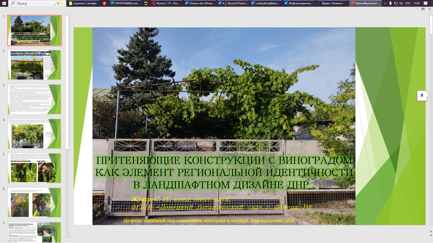 Жуков Сергей Петрович выступил на пленарном заседании с докладом на тему «Притеняющие конструкции с виноградом как элемент региональной идентичности в ландшафтном дизайне ДНР»