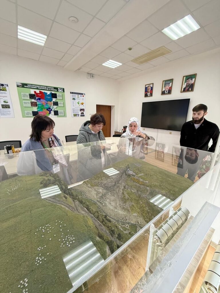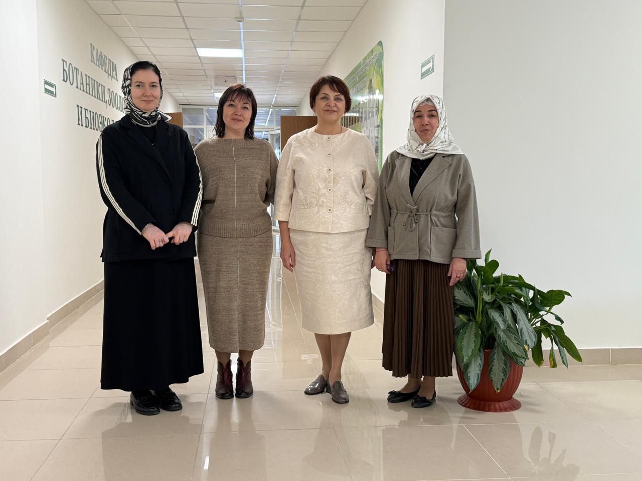 В ходе рабочей встречи ученые обсудили опыт научной работы в области эколого-флористических исследований. Декан биолого-химического факультета, зав. кафедрой ботаники, зоологии и биоэкологии Зазу Имрановна Ирисханова ознакомила коллег с опытом работы в области фундаментальных и прикладных научных исследований.