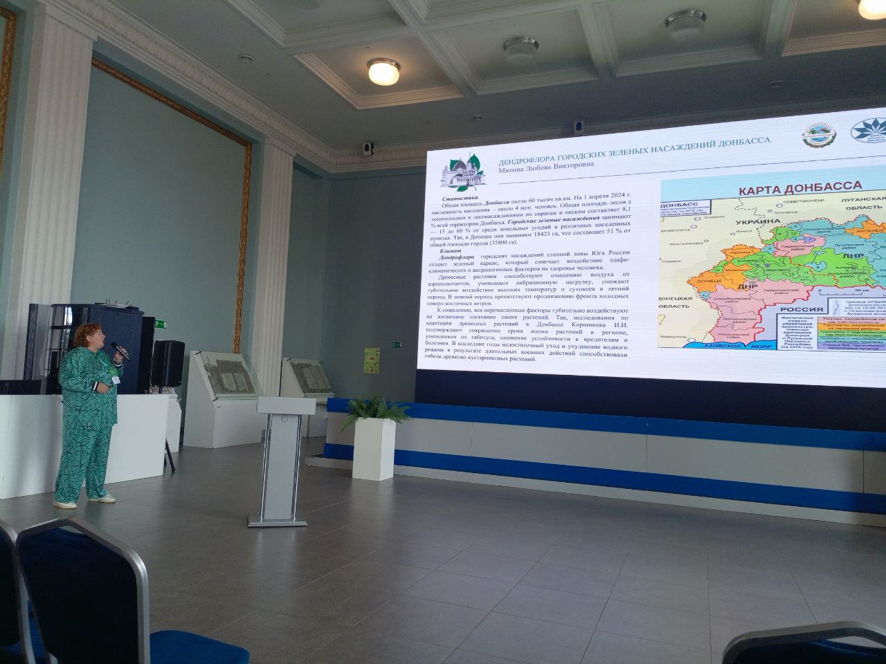 Любовь Викторовна представила вниманию коллег доклад на тему «Дендрофлора городских зеленых насаждений Донбасса», в котором были изложены материалы по обследованию насаждений в пяти населенных пунктах Донбасса, дан анализ таксономического состава дендрофлоры, описана её структура, очерчены проблемы и пути решения выявленных проблем.