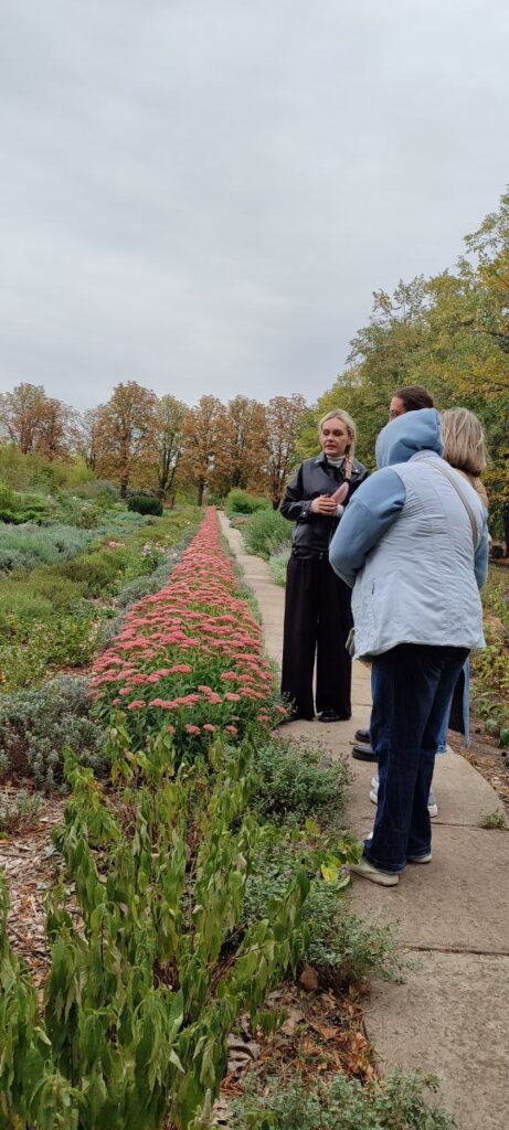 Младший научный сотрудник лаборатории культурных растений Донецкого ботанического сада Людмила Григорьевна Приходько рассказала посетителям историю возникновения аптекарских огородов в Европе и на Руси, познакомила с группами хозяйственно-ценных растений коллекции. Большинство растений на коллекционном участке «Сад ароматов» являются представителями мировой флоры, привлеченные в ботанический сад из других стран и природно-климатических зон. Семенной или посадочный материал был получен путем обменного фонда с другими ботаническими садами и опытными станциями, а также из частных коллекций. Большая часть растений происходит из стран Средиземноморья, Центральной и Малой Азии, Северной и Южной Америки. Есть редкие для нашей климатической зоны виды из Монголии, Китая и Северной Африки. На тематической экскурсии их можно не только увидеть, но и узнать об особенностях их выращивания, традициях их использования в медицине и кулинарии народов мира, современного применения в разных сферах деятельности человека.