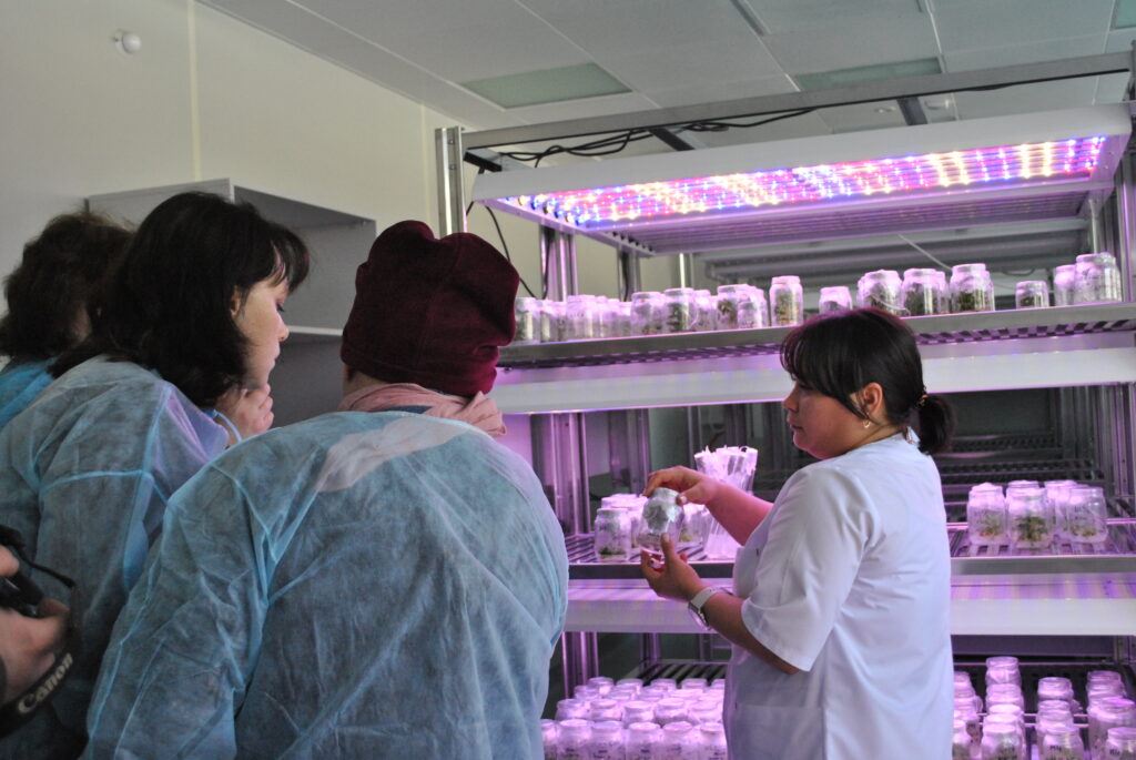 Для гостей была организована экскурсия по лаборатории клонального микроразмножения и адаптационному тепличному комплексу, введённым в эксплуатацию в рамках программы развития научной инфраструктуры, где они имели возможность ознакомиться с процессом полного цикла работ: от введения в культуру in vitro до адаптации растений к условиям закрытого и открытого грунта.