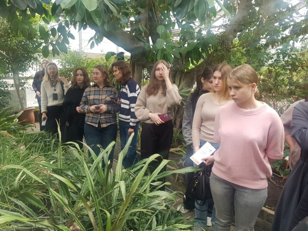 Студенты познакомились с историей и коллекционным фондом ботанического сада, узнали о направлениях его исследовательской и прикладной деятельности и посетили экскурсию по оранжерейному комплексу.